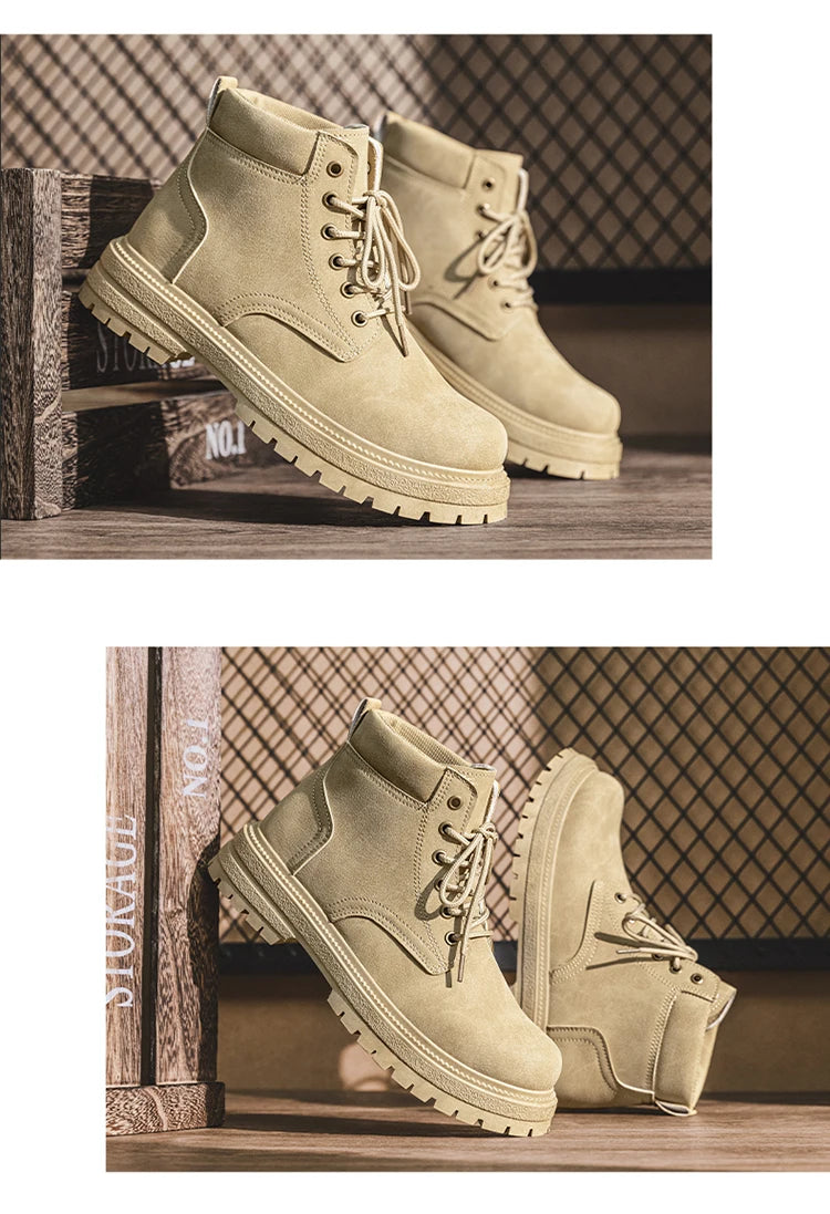 Men Classic Leather Platform Motorcycle Boots