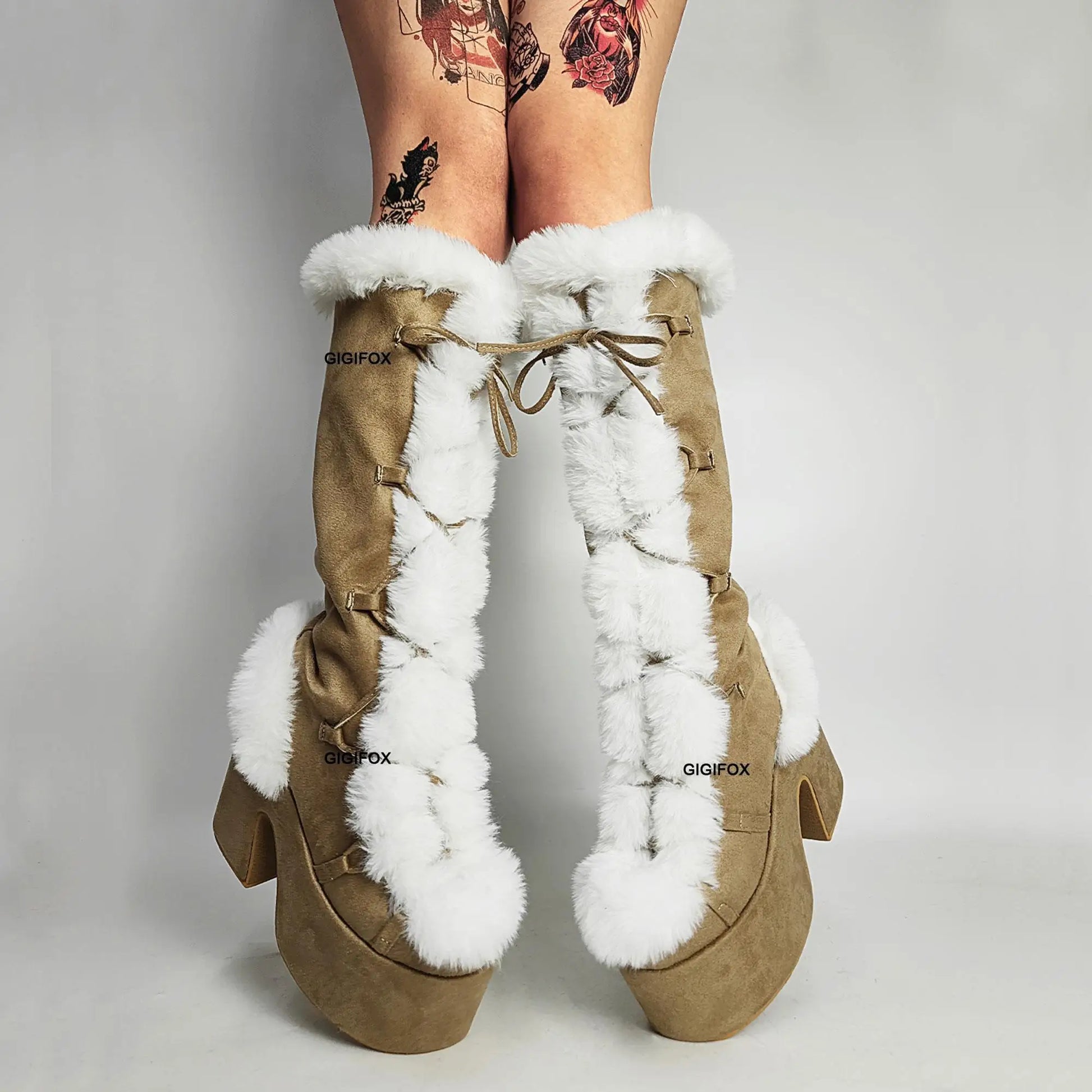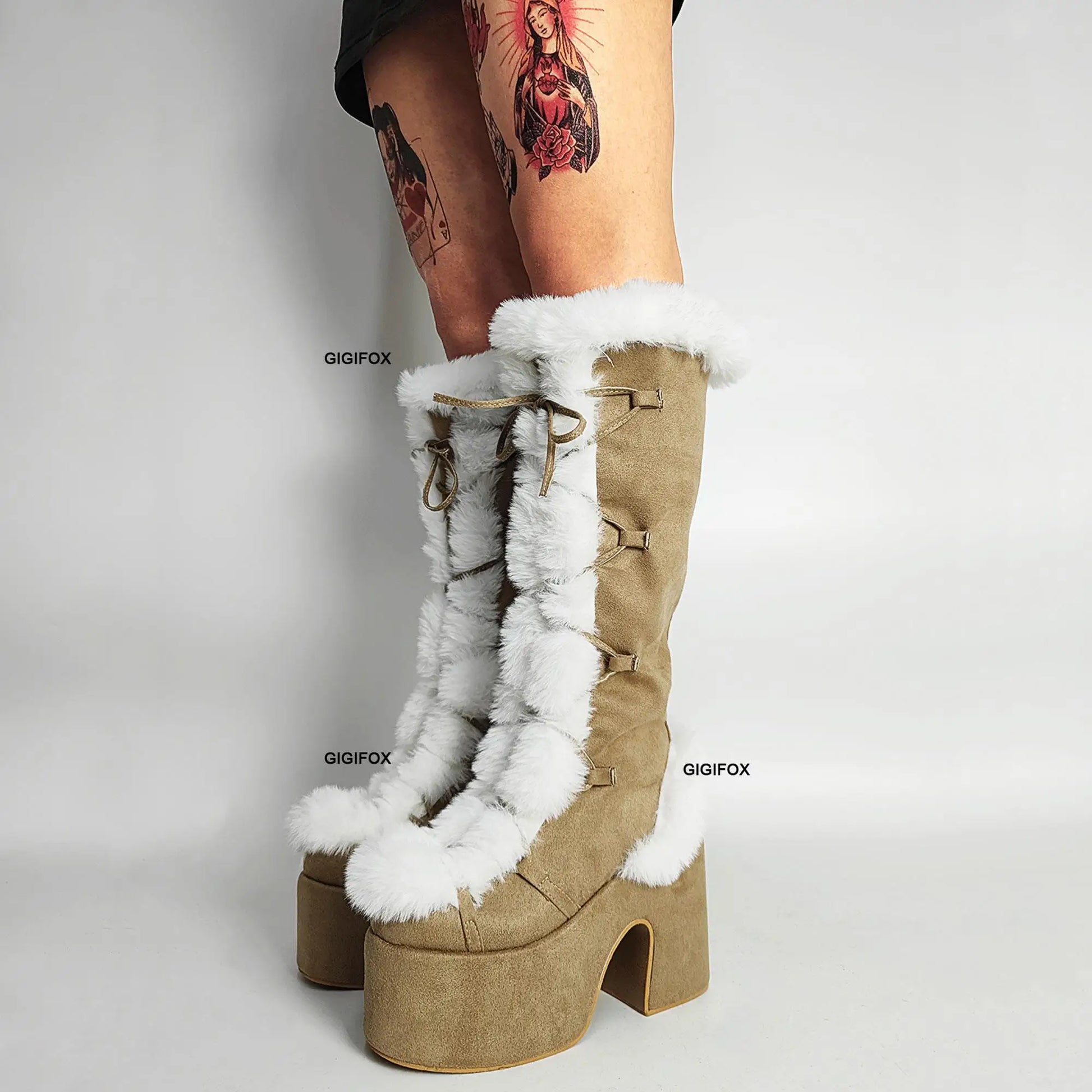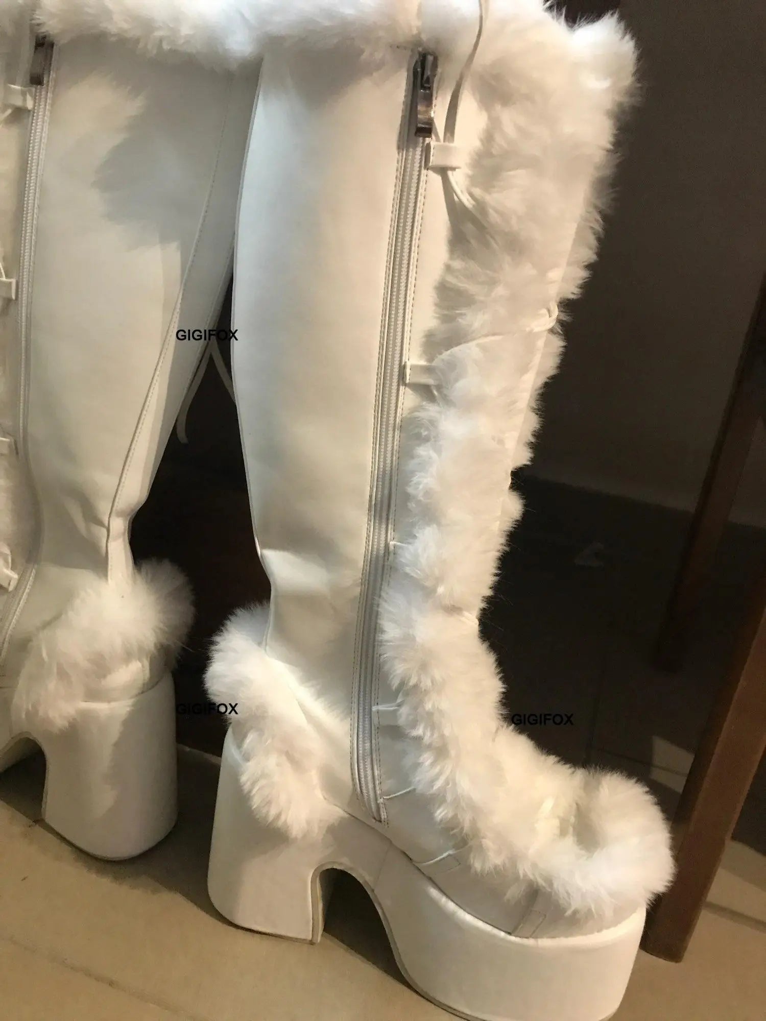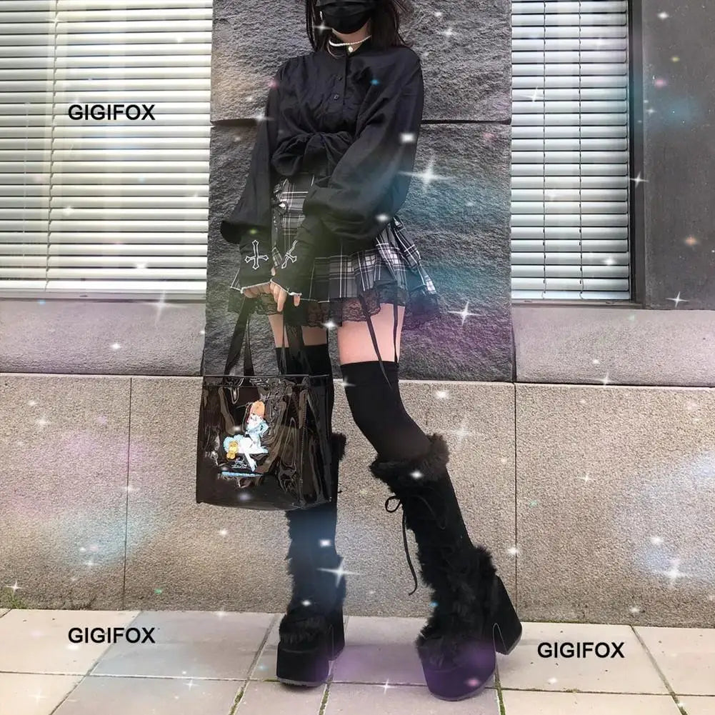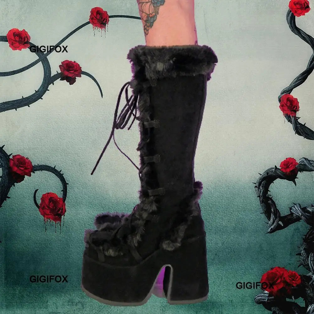 Show off bold attitude and winter warmth with these platform furry boots from GIGIFOX. Featuring a chunky high heel, knee-high design, and soft faux fur for a dramatic gothic–punk look. Perfect for autumn and winter fashion — stay fierce, stylish, and cozy! 🖤🔥👢