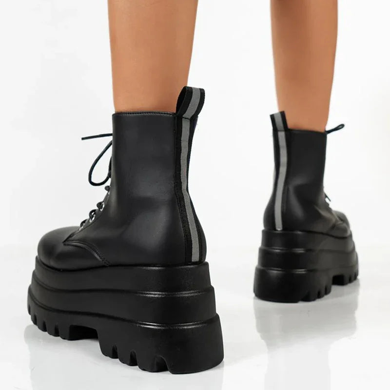 Unleash your bold style with these gothic chunky platform motorcycle boots. Crafted from durable PU leather with a thick sole for an edgy look and strong support. Perfect for autumn and winter streetwear, concerts, and everyday punk fashion. Step fierce, stay confident! 🖤👢🔥