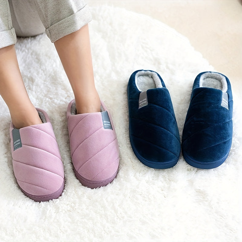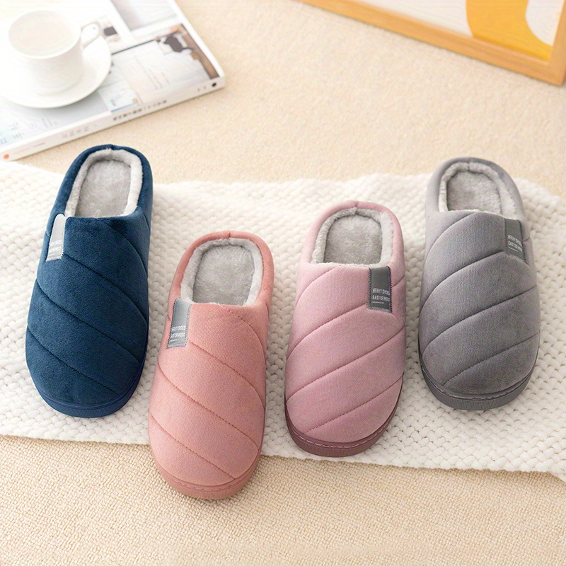 Unisex Casual Striped Plush Slippers – Comfy Non-Slip Home Footwear for Fall to Winter