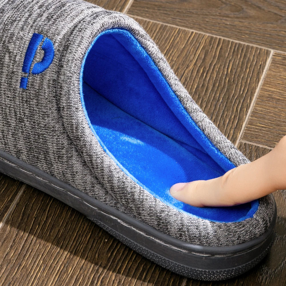 Warm Embroidered slippers men TPR Memory foam Platform Cushion Soft Non Slip Stripe Comfortable Living Room Shoes High Quality
